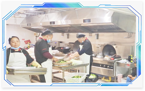 北京西平莊百姓大食堂為了支持響應國家“藍天保衛戰”政策,整個大食堂都采用的這種壹指藍環保油煙機設備,不僅不用向外部排放油煙,還給廚房人員更好的工作環境,更健康的身體。